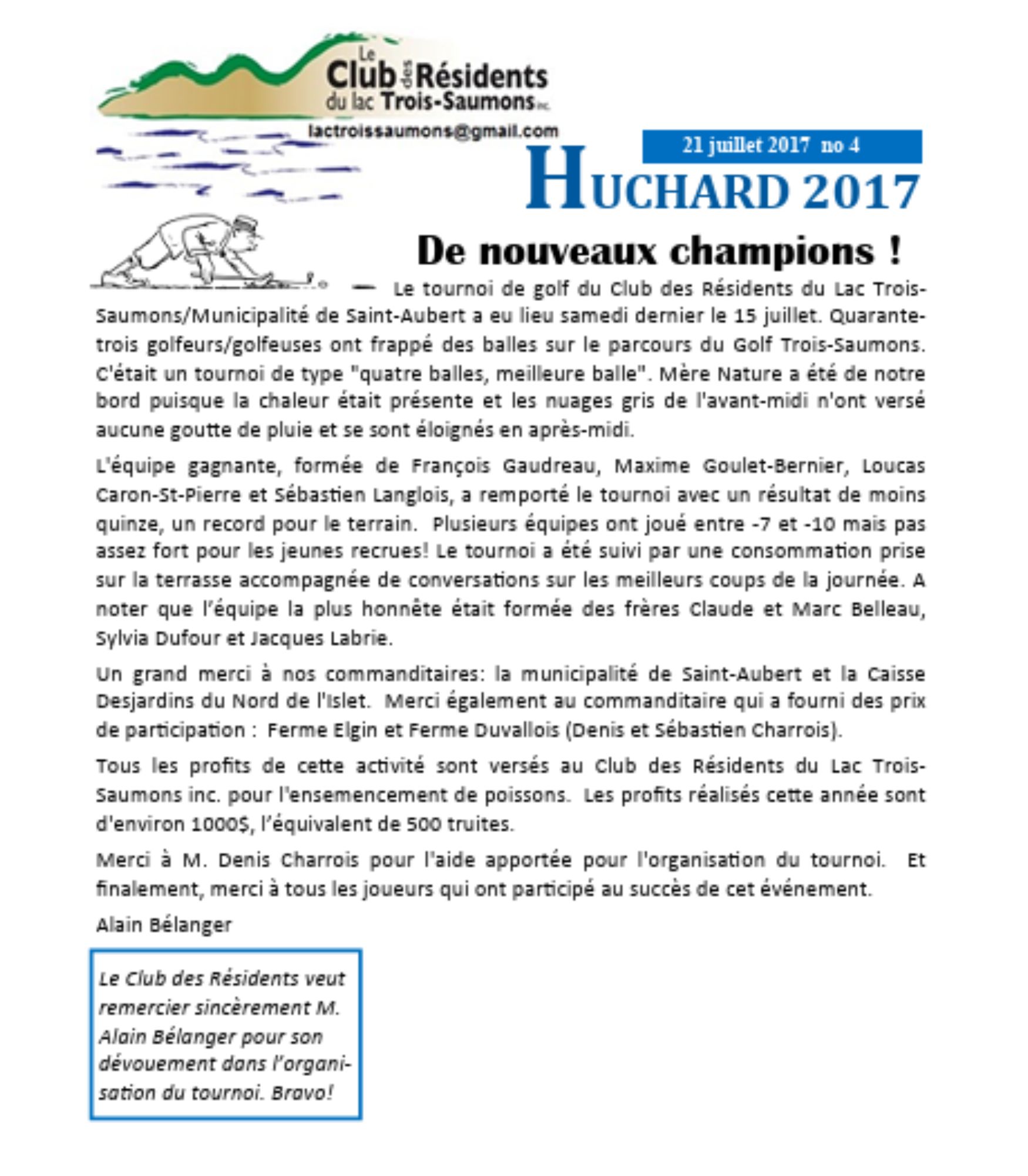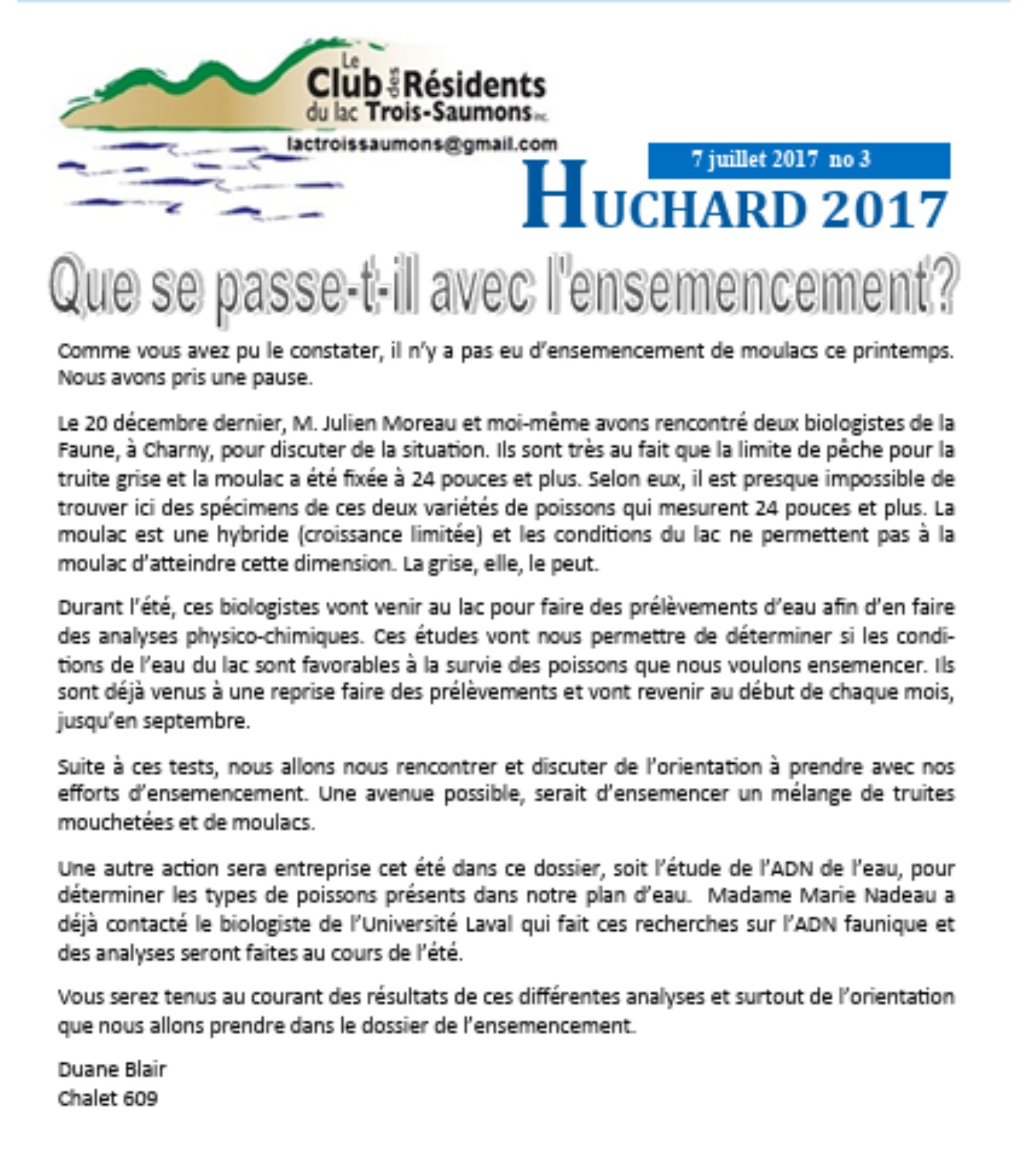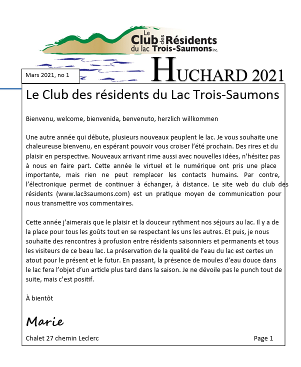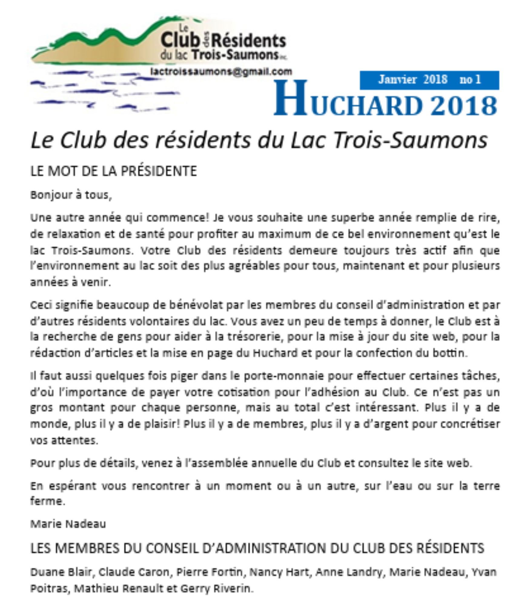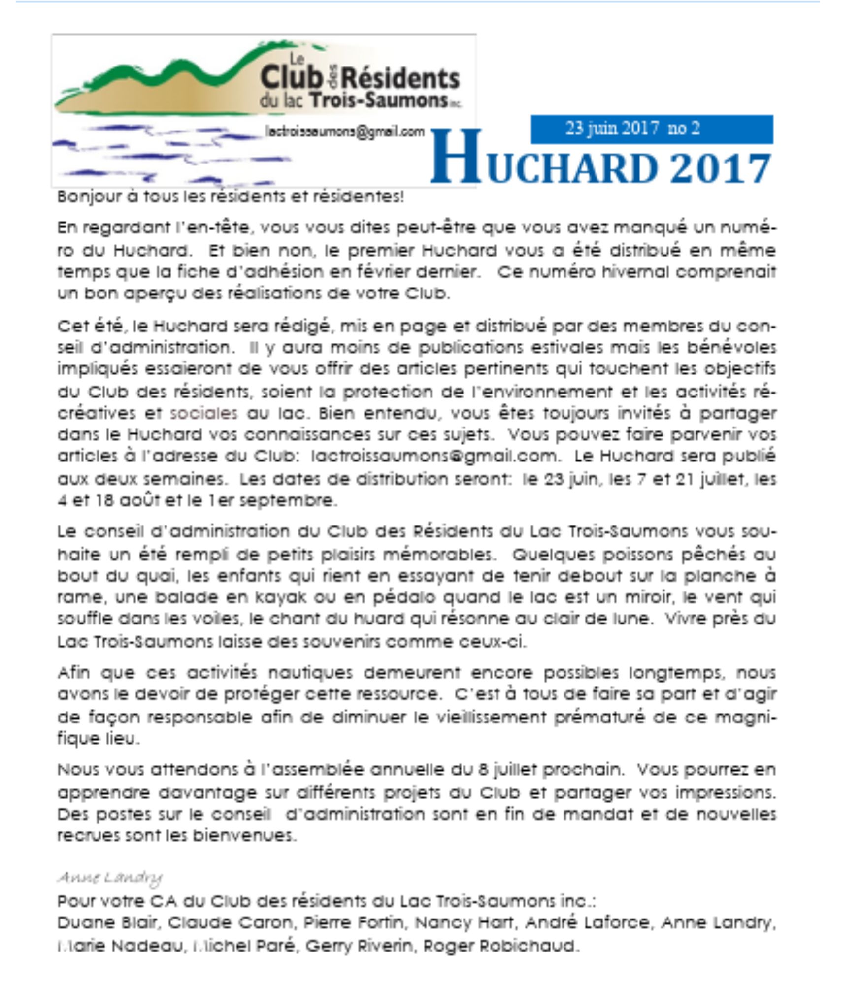 Club des Résidents du Lac Trois-Saumons © 2016 | Devenir membre